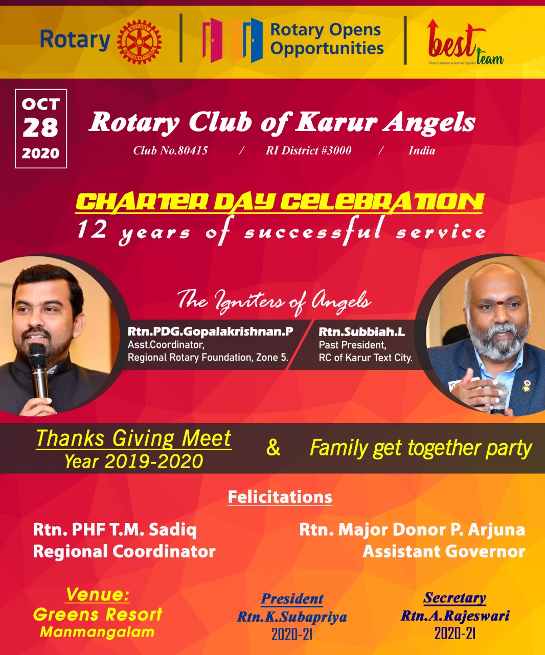 Chief Guests: PDG Rtn. Gopalakarishnan and PP Rtn. Subbiah